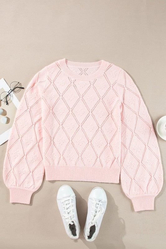 This sweater is all about the openwork - delicate, intricate, and oh-so-lovely. With a plaid pattern and puff sleeves, it's got that classic look with a vintage twist. Style it with high-waisted bottoms for a flattering and fashionable touch.